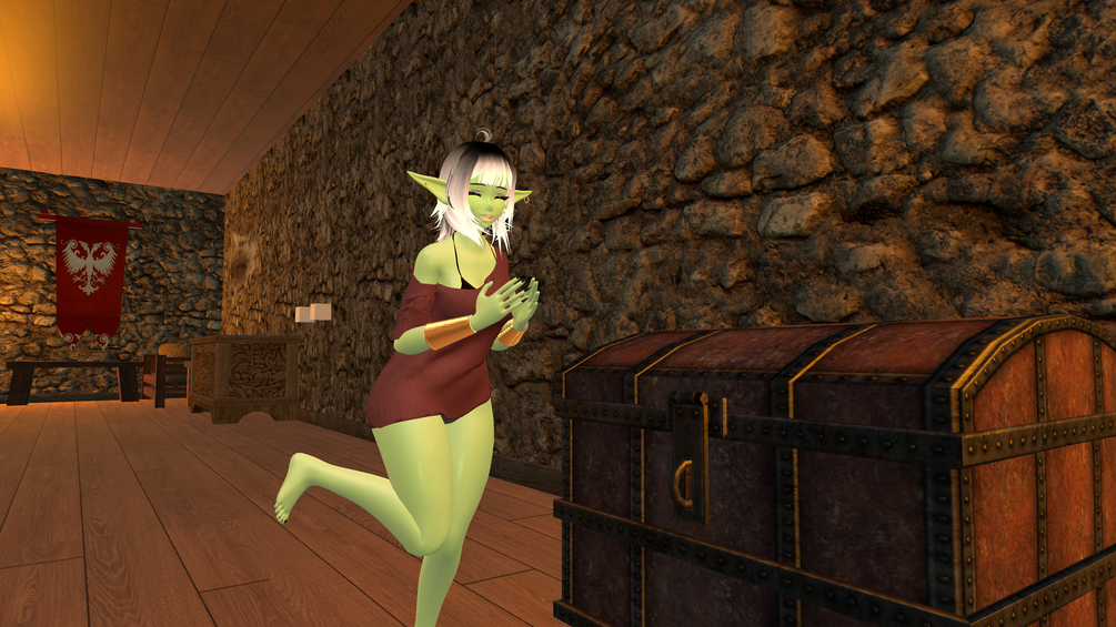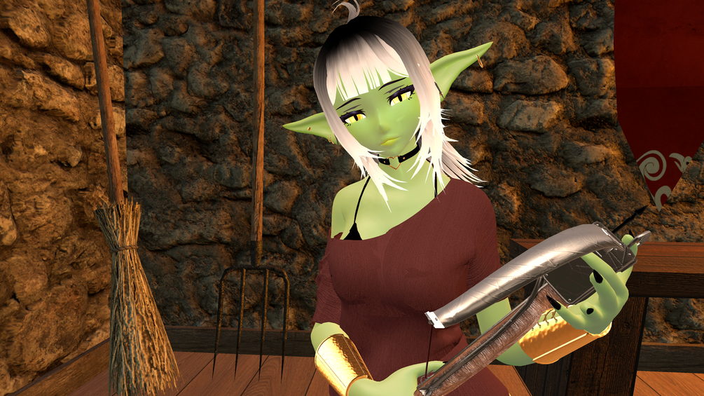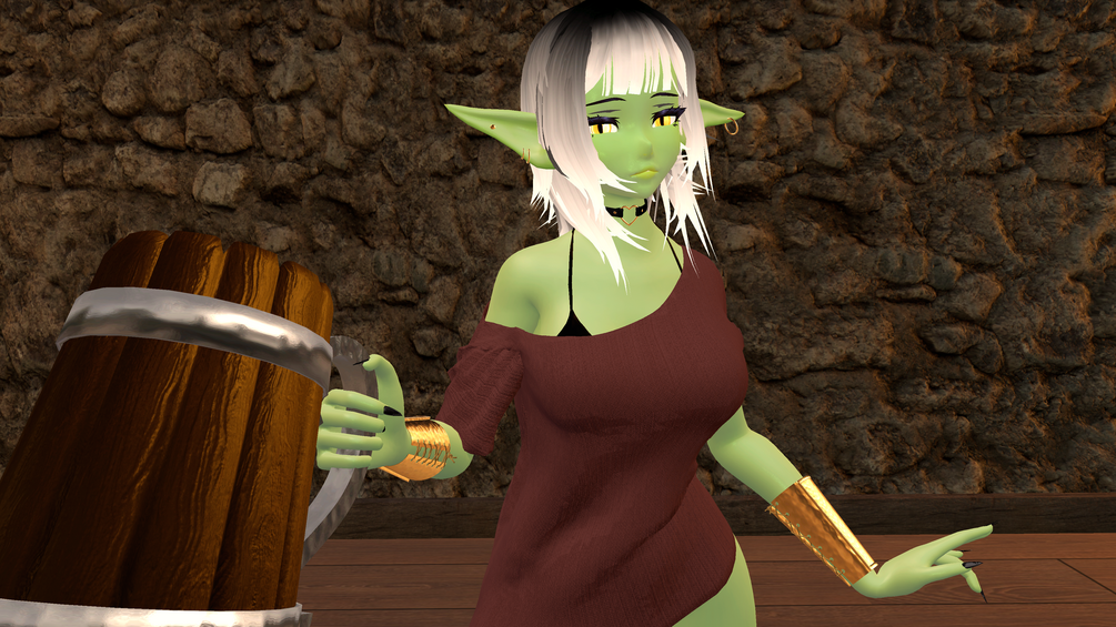 Rowena is a mischievous goblin girl who loves drinking, stealing and pranking people. She travels all over with her slime companion, Numeri.